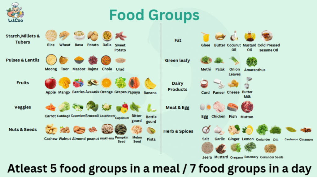 There you go, mumma! A well balanced meal is crafted by you for your little one 🙂