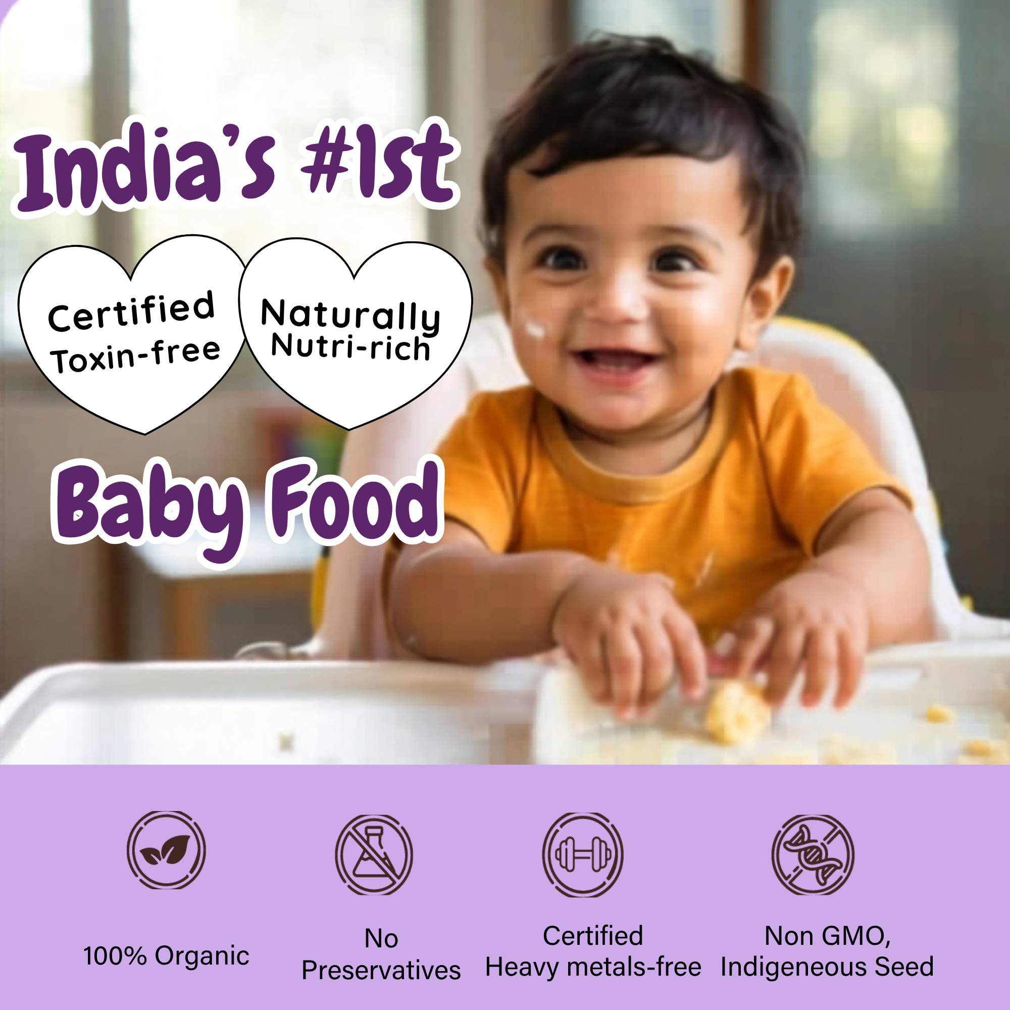 • Certified Arsenic free – Arsenic is a heavy metal known to cause cancer in babies. 93% of the rice cultivated in India contains Arsenic