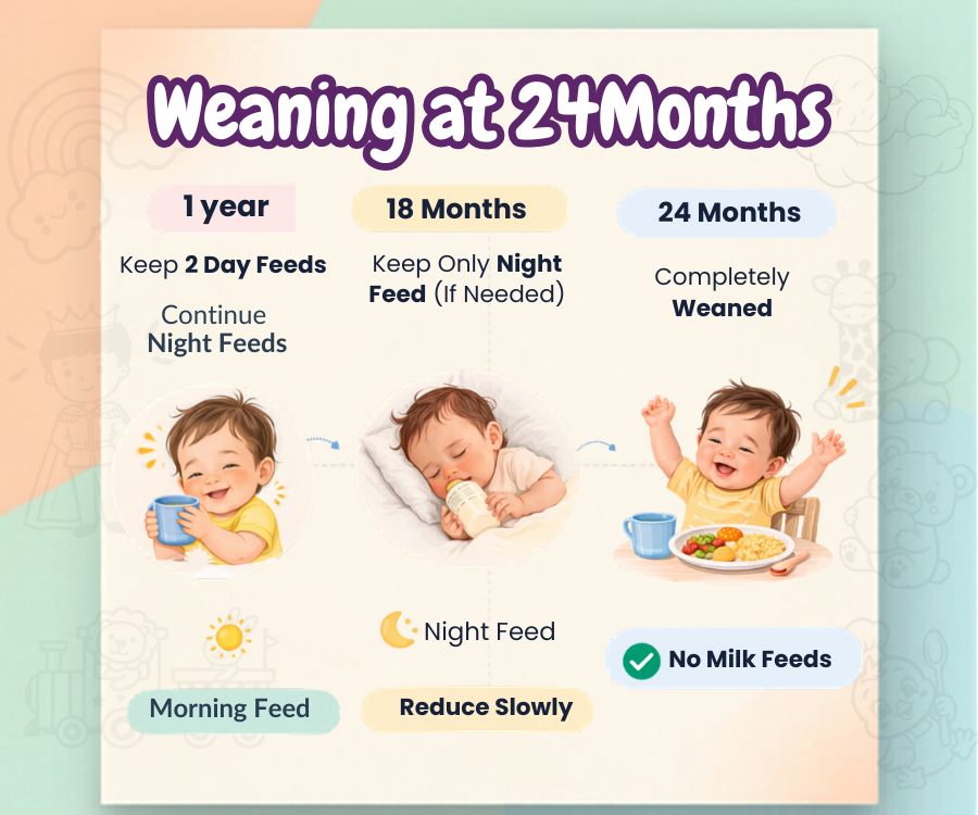 Some babies reduce milk feeds quickly, while others take more time — both are completely normal.